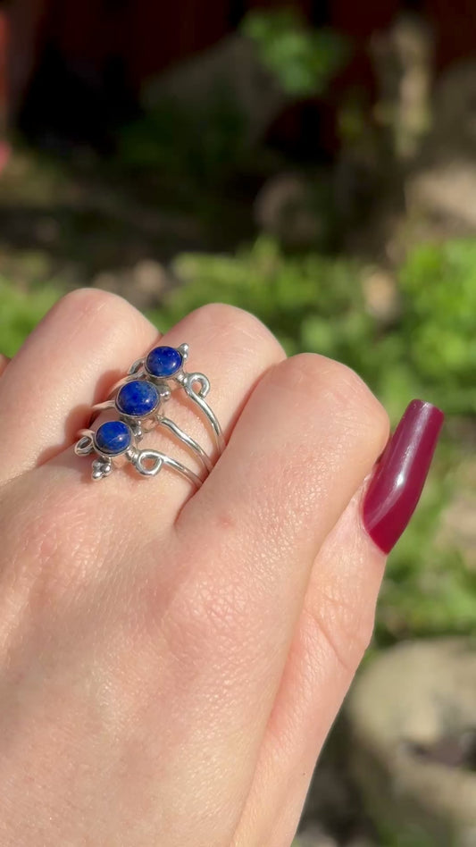 Lapis Lazuli 925 Silver Triple Ring (SIZE R/S) - Dark Femme Collection