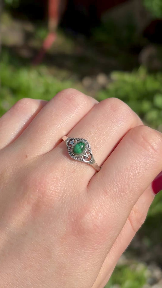 Malachite 925 Silver Celestial Ring (SIZE R/S) - Dark Femme Collection