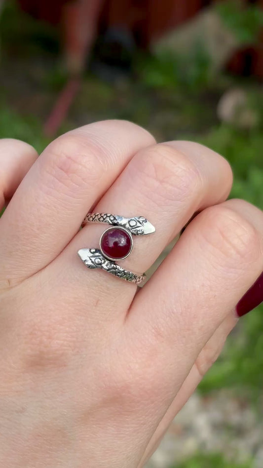 Red Garnet 925 Silver Snake Ring (SIZE N/O) - Dark Femme Collection