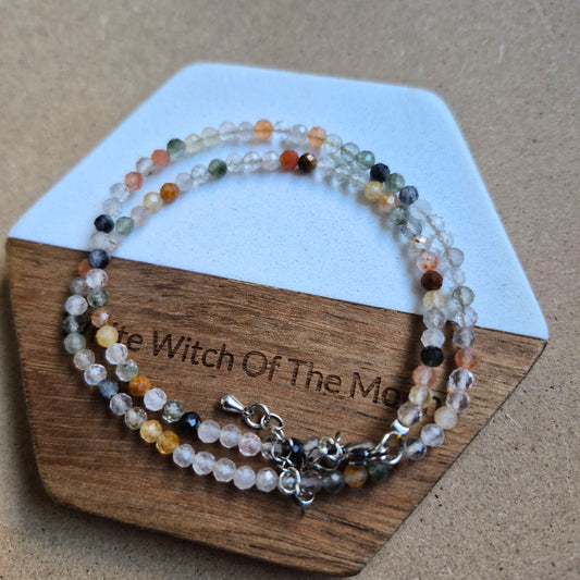 Mixed rutile quartz 3mm faceted bead choker