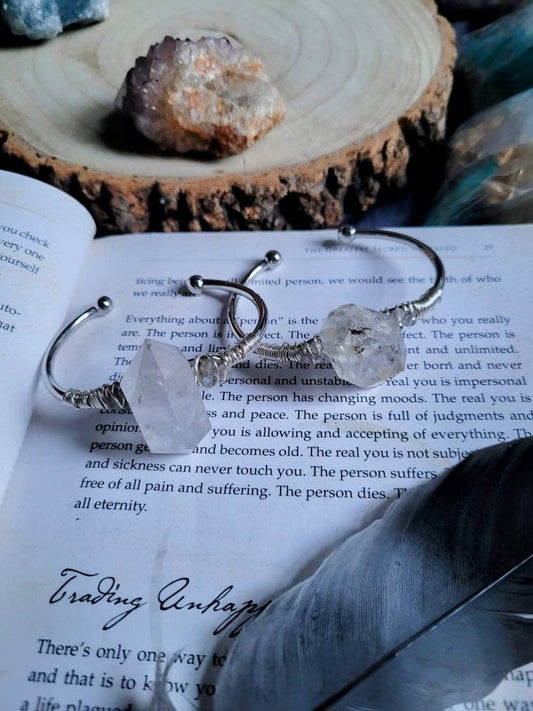 Herkimer Diamond Cuff Bangle - Gold or Silver