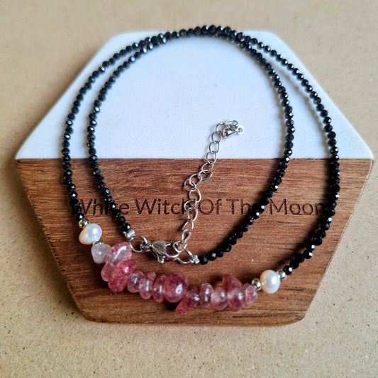 Strawberry Quartz and black tourmaline choker necklace everyday witch collection