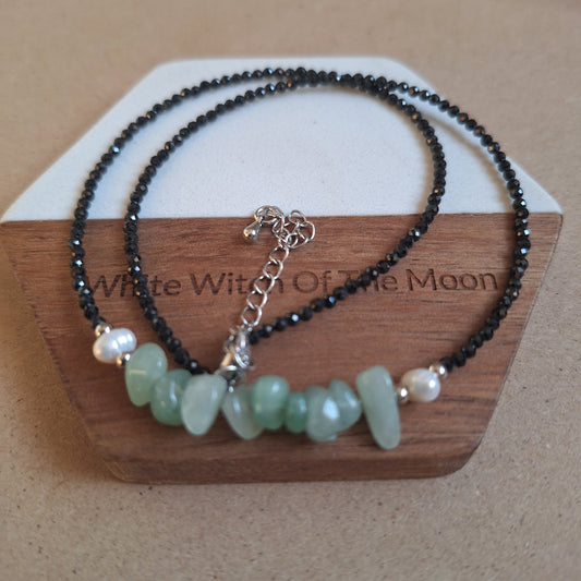 Black Tourmaline Beaded Necklace black obsidian heart crystal healing protection amulet gift for him or her