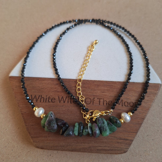 Ruby Zoisite Choker and Black Tourmaline 16-18" adjustable