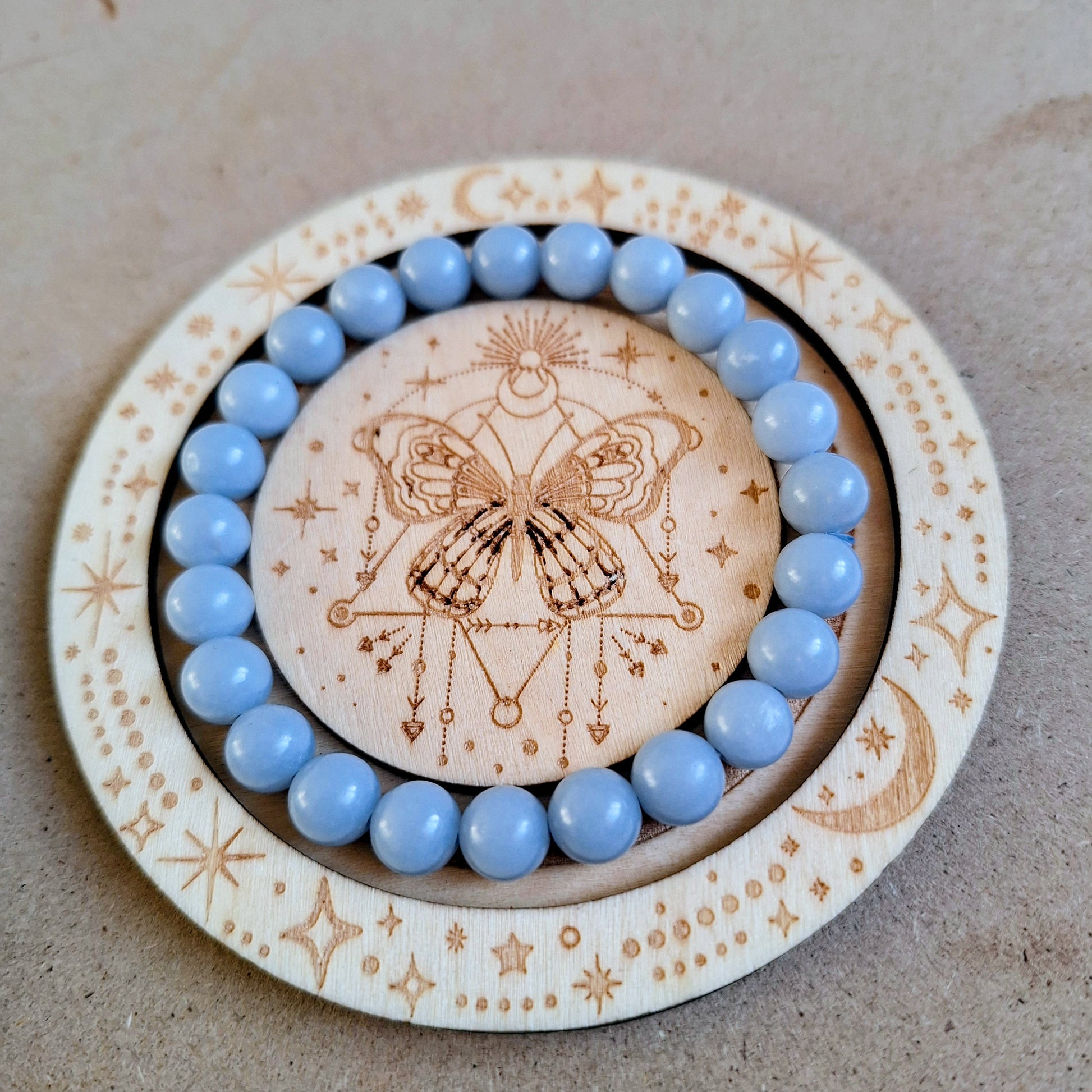 Angelite handmade bracelet made with lots of love and positivity, all stones are set on strong stretch elastic.