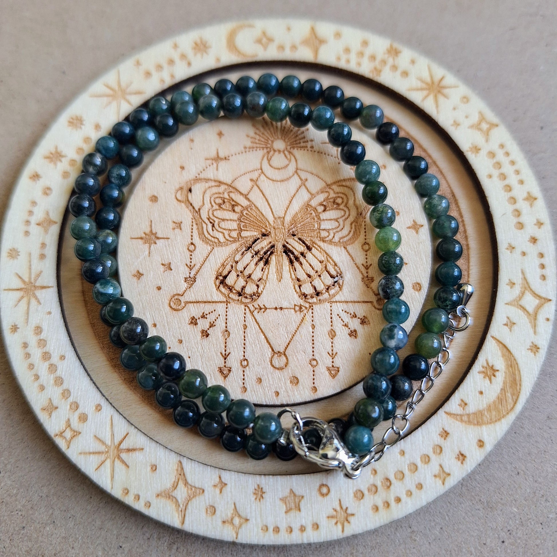 Green moss agate choker necklace minimalist crystal healing natural stone