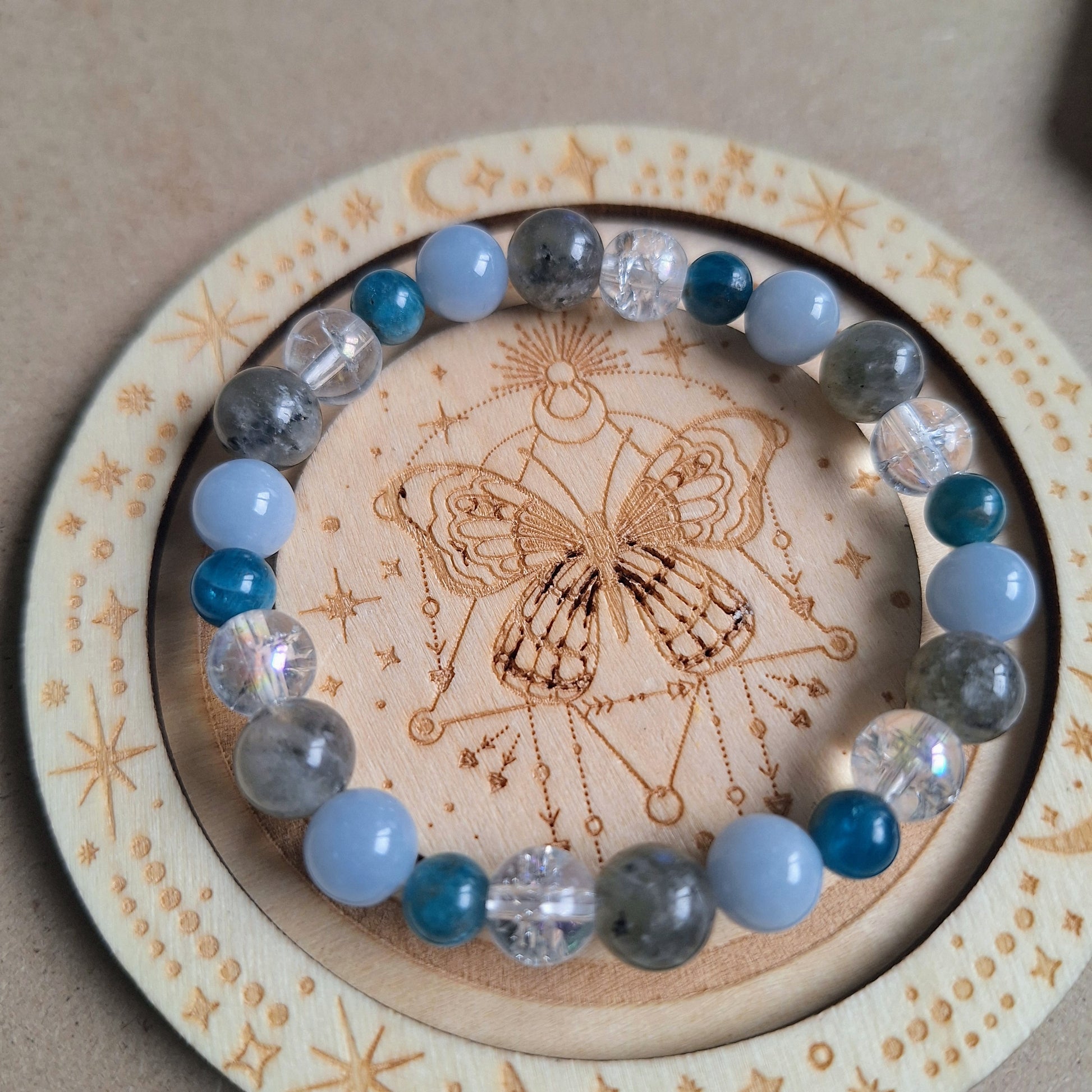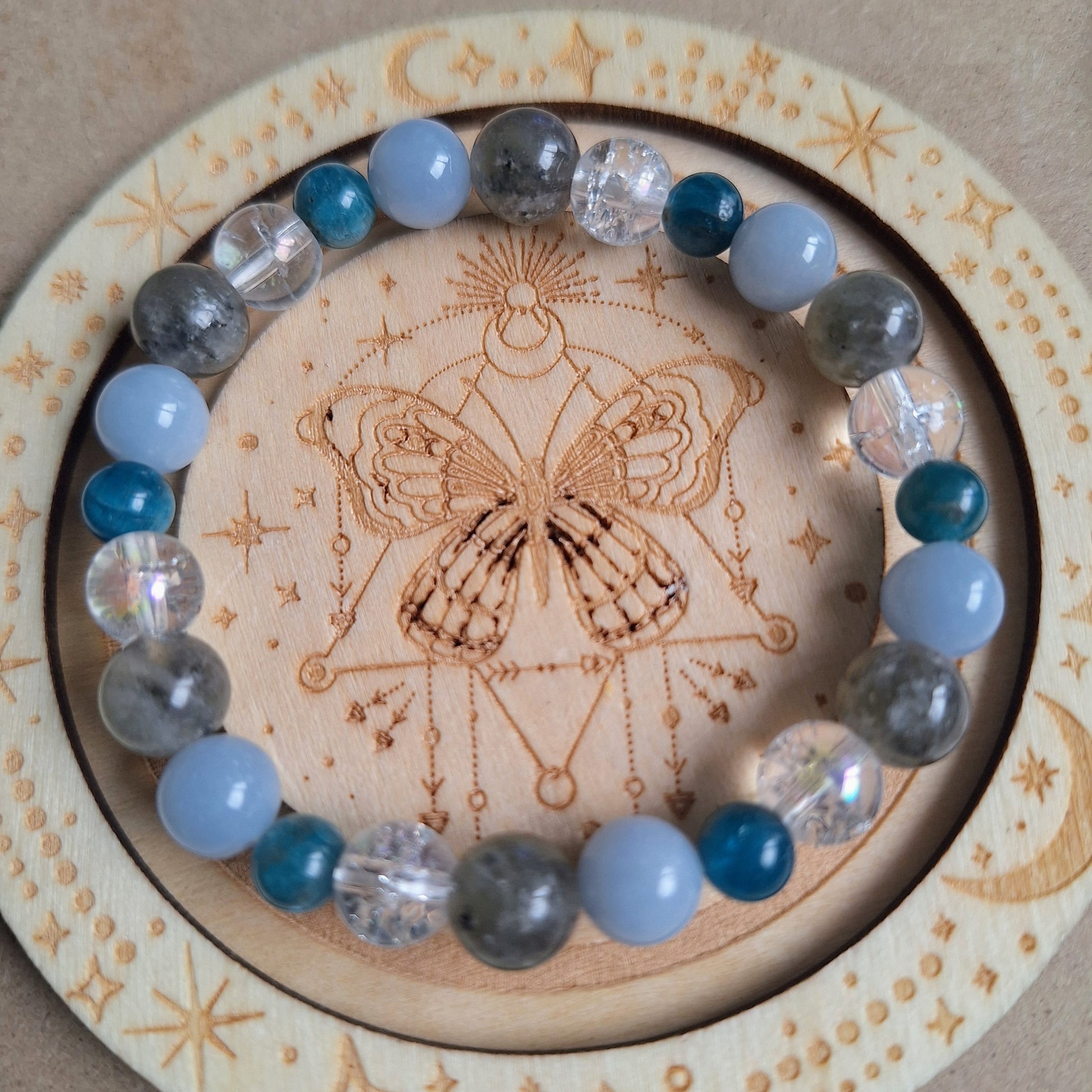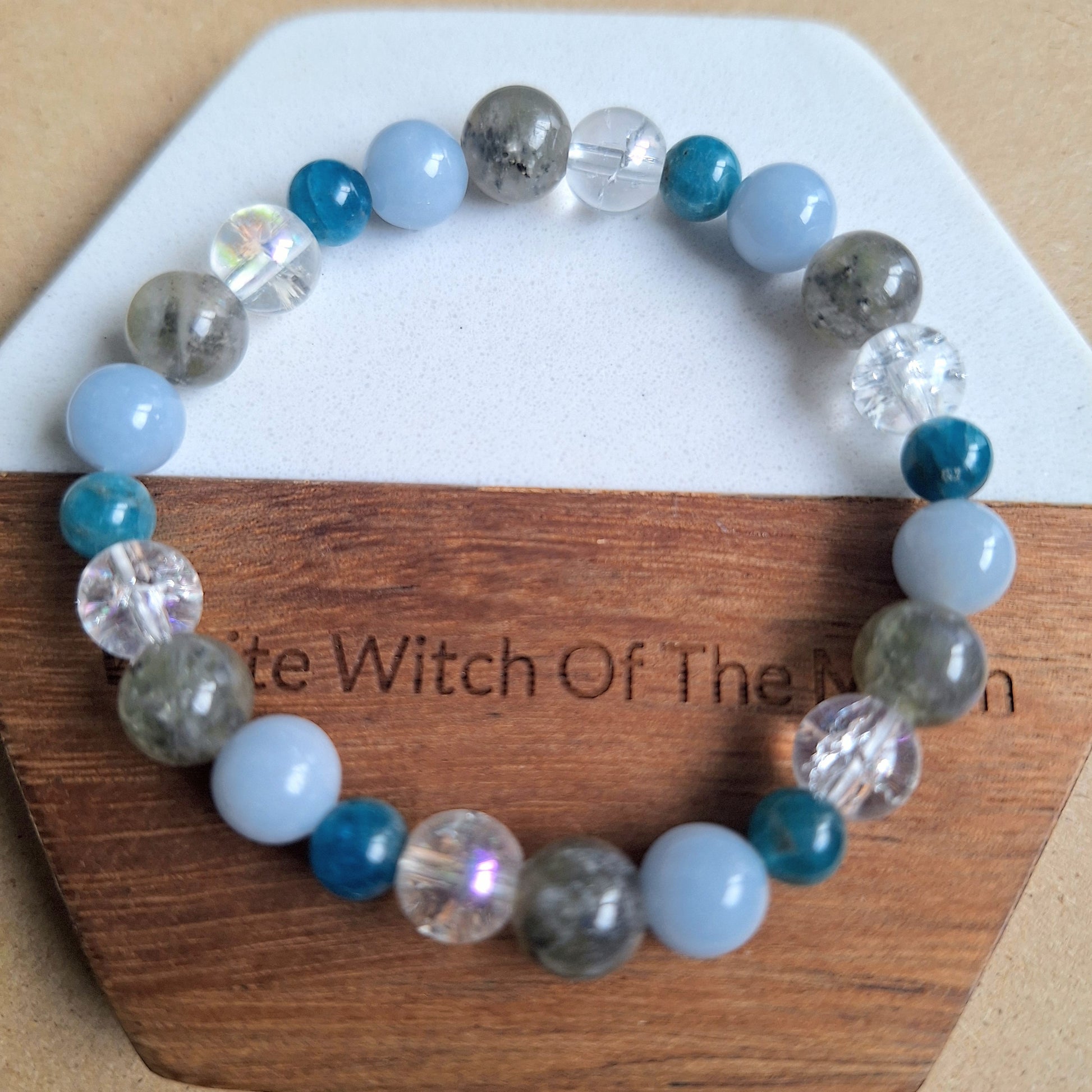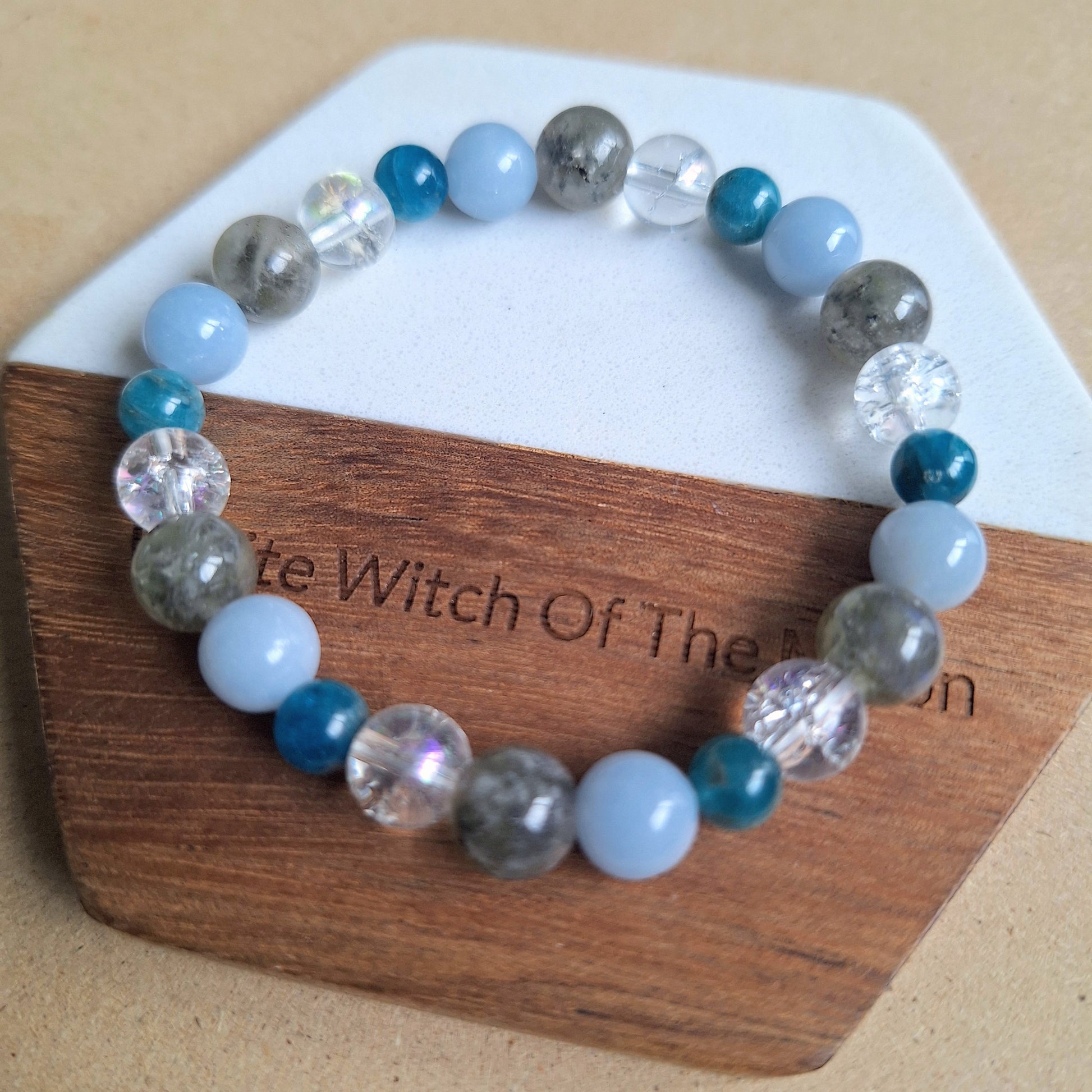 Guardian Angel Bracelet with Angelite, Apatite, Labradorite and Cracked Quartz crystal healing gift for her witchy jewellery for women