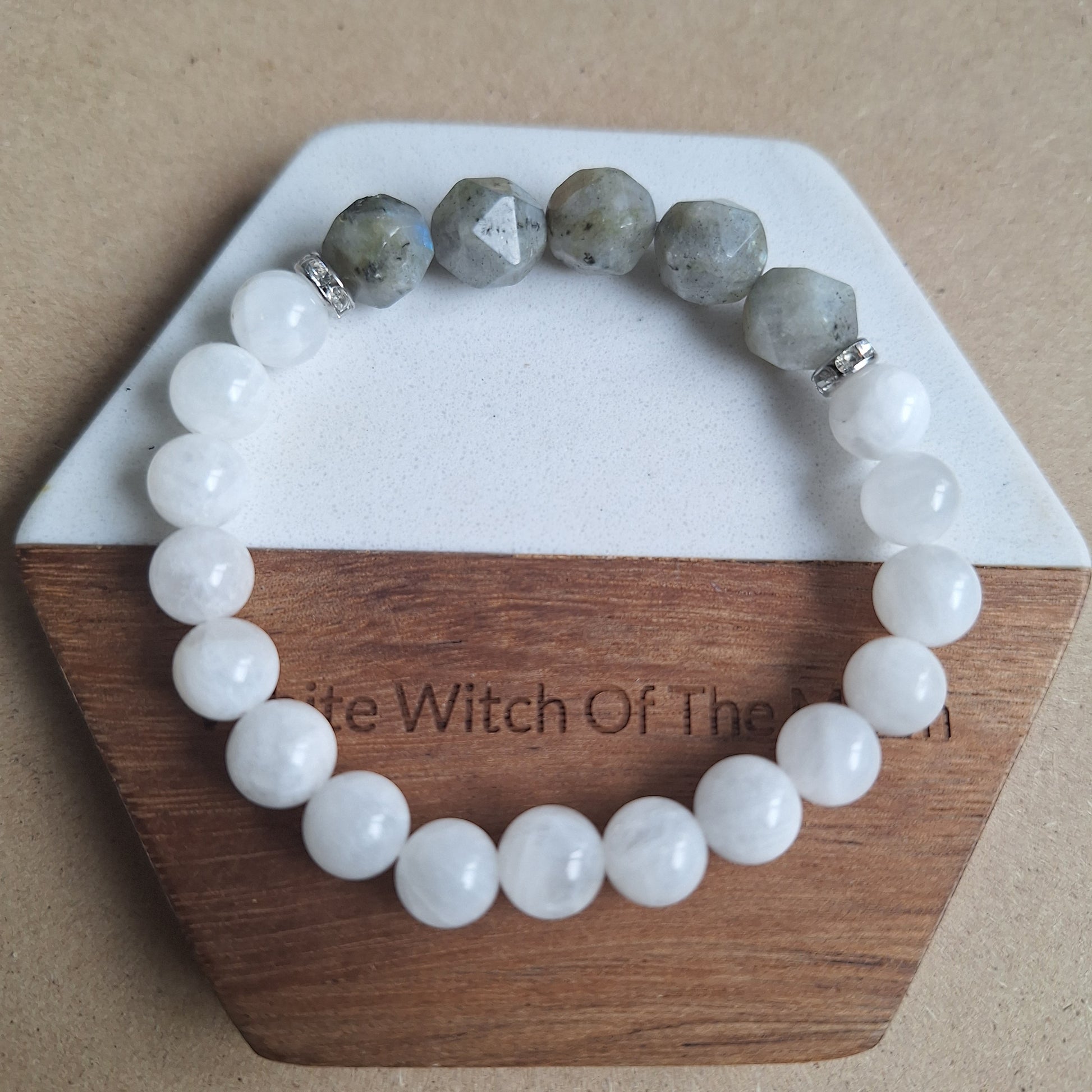 labradorite and white moonstone bracelet made with lots of love and positivity, all stones are set on strong stretch elastic.