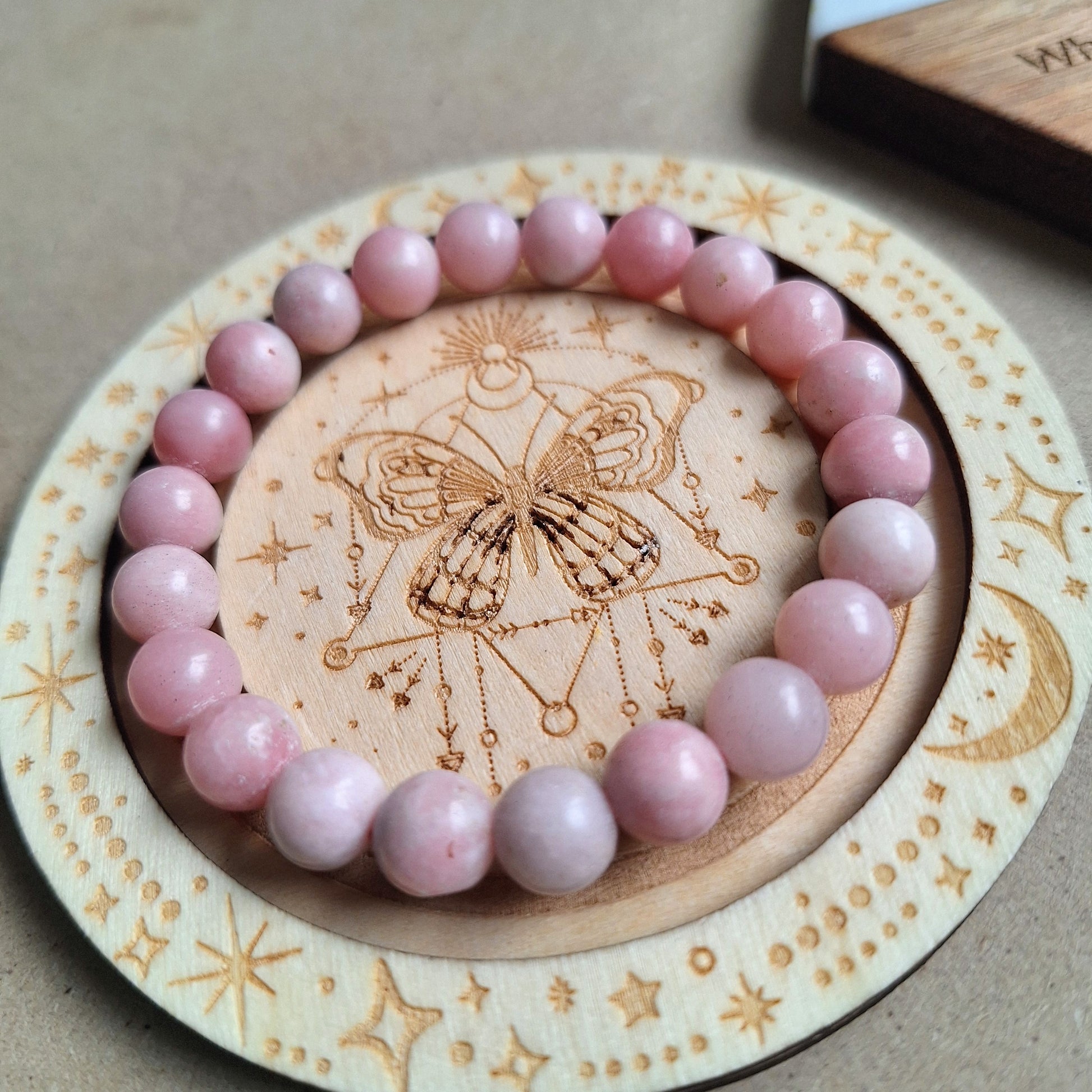 pink opal bracelet crystal healing natural stone heart chakra gift for her gemstone stretchy stacking handmade jewellery