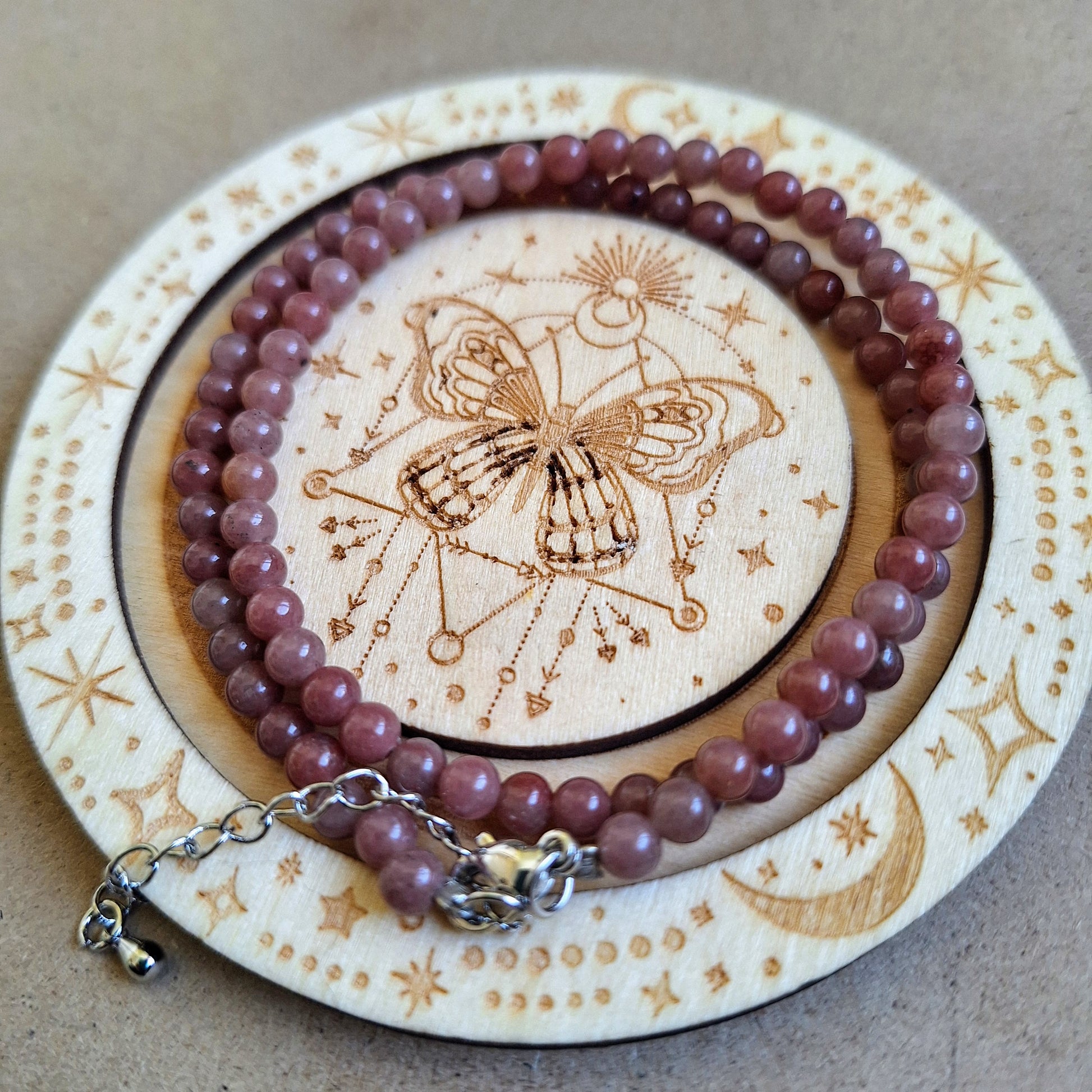 Expertly crafted and infused with self-love and compassion, the Raspberry Aventurine Choker Necklace features 4mm beads for a delicate yet powerful statement. Each bead is adjustable, making it the perfect accessory for any occasion. Embrace your inner witchy vibes with this beautiful necklace.