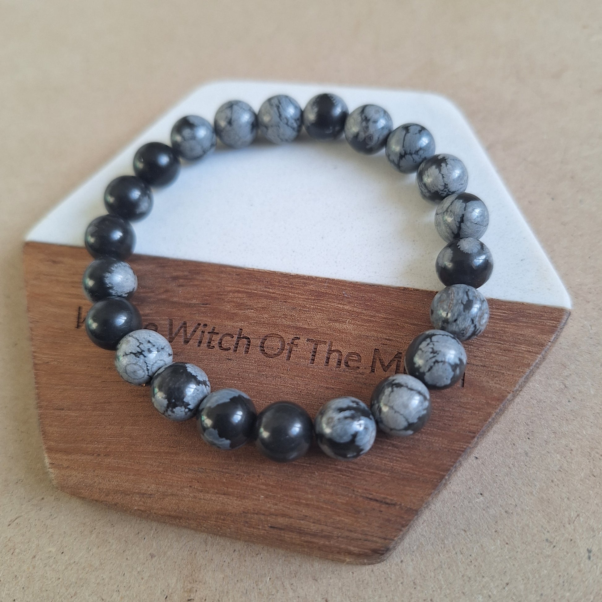 snowflake obsidian handmade bracelet made with lots of love and positivity, all stones are set on strong stretch elastic.