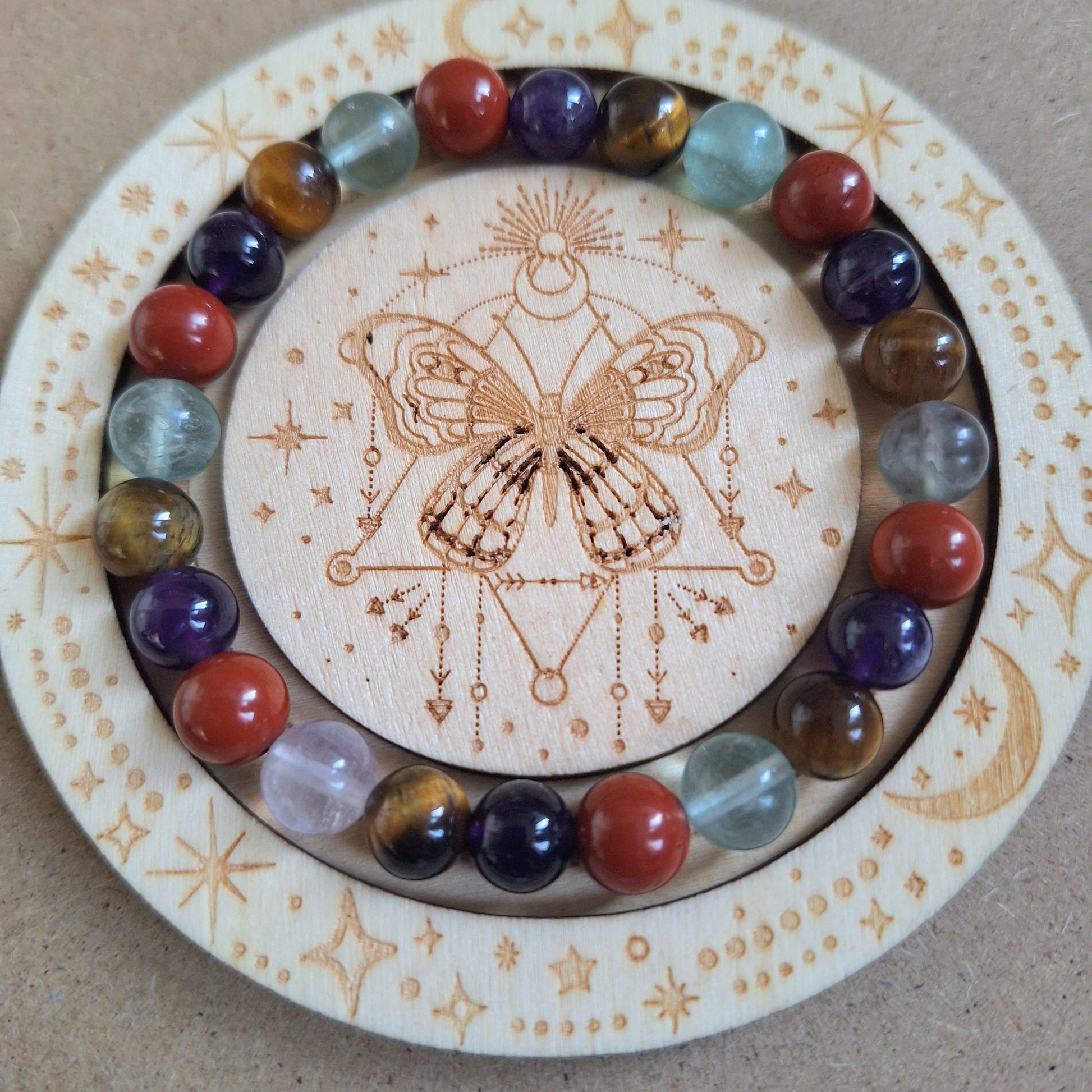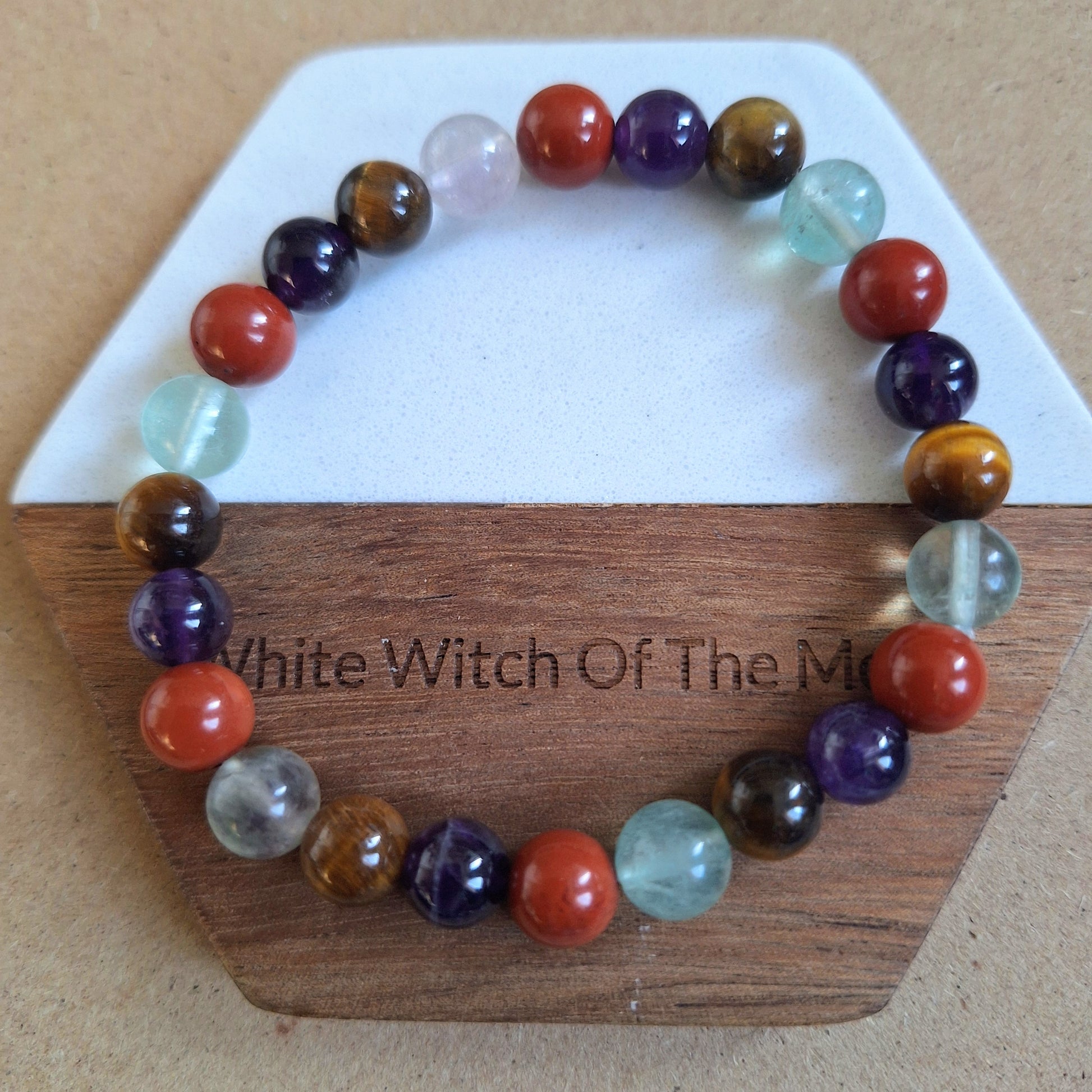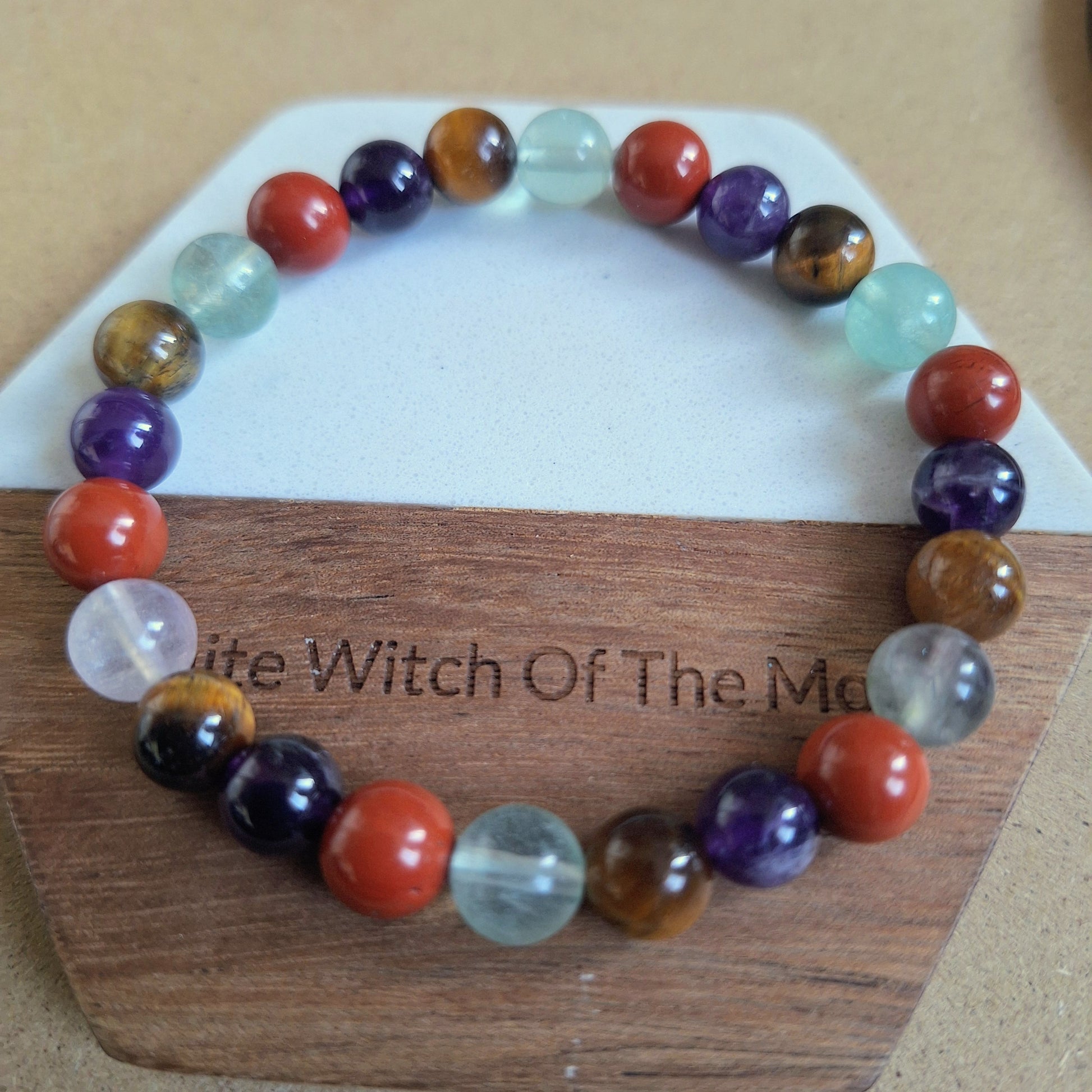 Willpower Bracelet crystal healing natural stone tigers eye, red jasper, fluorite and amethyst gift for him or her